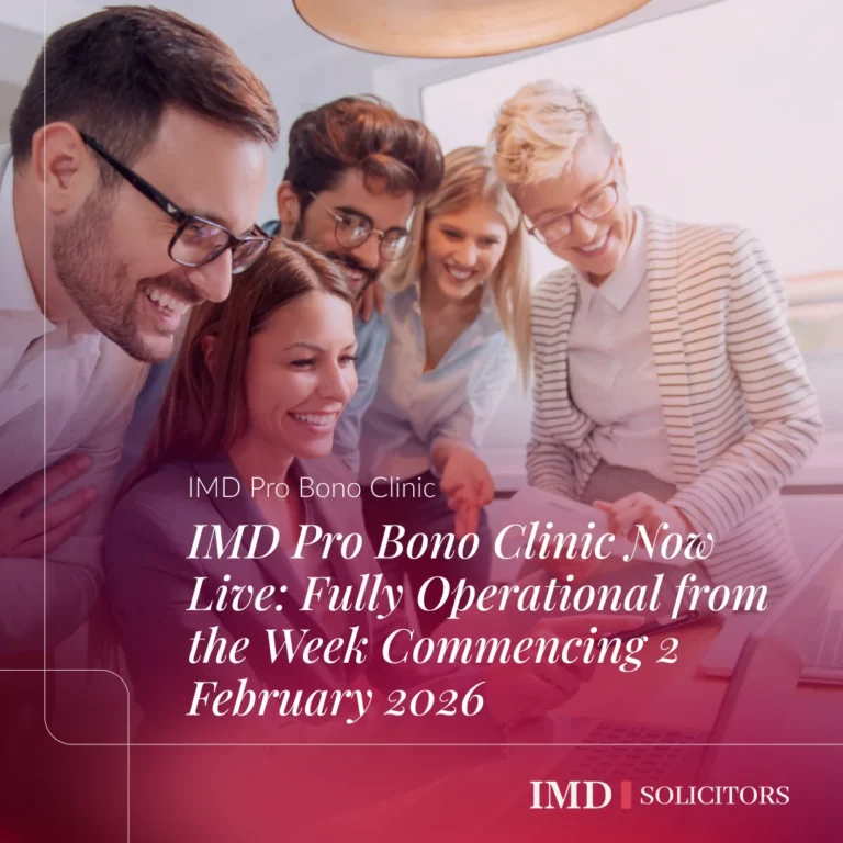 IMD Solicitors is excited to announce the launch of its fully remote Pro Bono Clinic, an initiative designed to improve access to justice for individuals who may be unable to obtain legal advice due to financial constraints. Why Pro Bono Still Matters Usually, legal problems do not arise at convenient moments – and they rarely […]